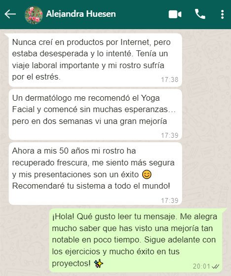 Este producto no sustituye el parecer de un médico profesional. Consulta siempre a un médico para tratar los asuntos relacionados con tu salud. Los resultados pueden variar de persona a persona. Todos los testimonios presentados anteriormente son reales y fueron escritos por usuarios reales, clientes o seguidores de la «Certificación en Yoga Facial». Por favor tome en cuenta que estos testimonios no representan necesariamente los resultados típicos del programa. Para proteger la identidad de los usuarios, las Imágenes son de Stock y no representan personas reales, son Ilustrativas.