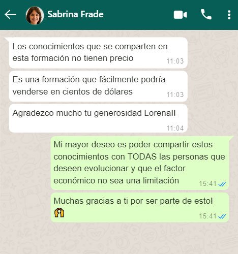 Apenas realices el pago recibirás por correo el acceso y podrás comenzar de inmediato con el curso. Ya tienes todo el contenido grabado, para que puedas verlo a tu ritmo, sin presiones. Podrás hacerme todas las consultas que desees.